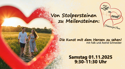 Zeit zu zweit ist eine Veranstaltung, die sich an alle Paare richtet, welche Ihren Weg verbindlich miteinander gehen wollen. Wir freuen uns, eine Veranstaltung…